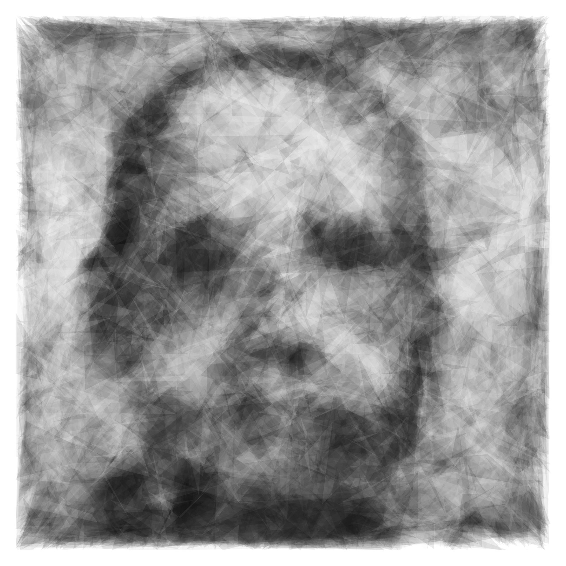 Paglen’s contribution to this long-serving trope is to create flower formations via computer vision algorithms—ones built to analyse real-life photographs. The colours and shapes in Paglen’s images are conceptualised composites the AI has detected in images of flowers. They are not flowers, but what an AI thinks a flower is. They are, therefore, allegories for how AI systems interpret the broad complexities of humanity.