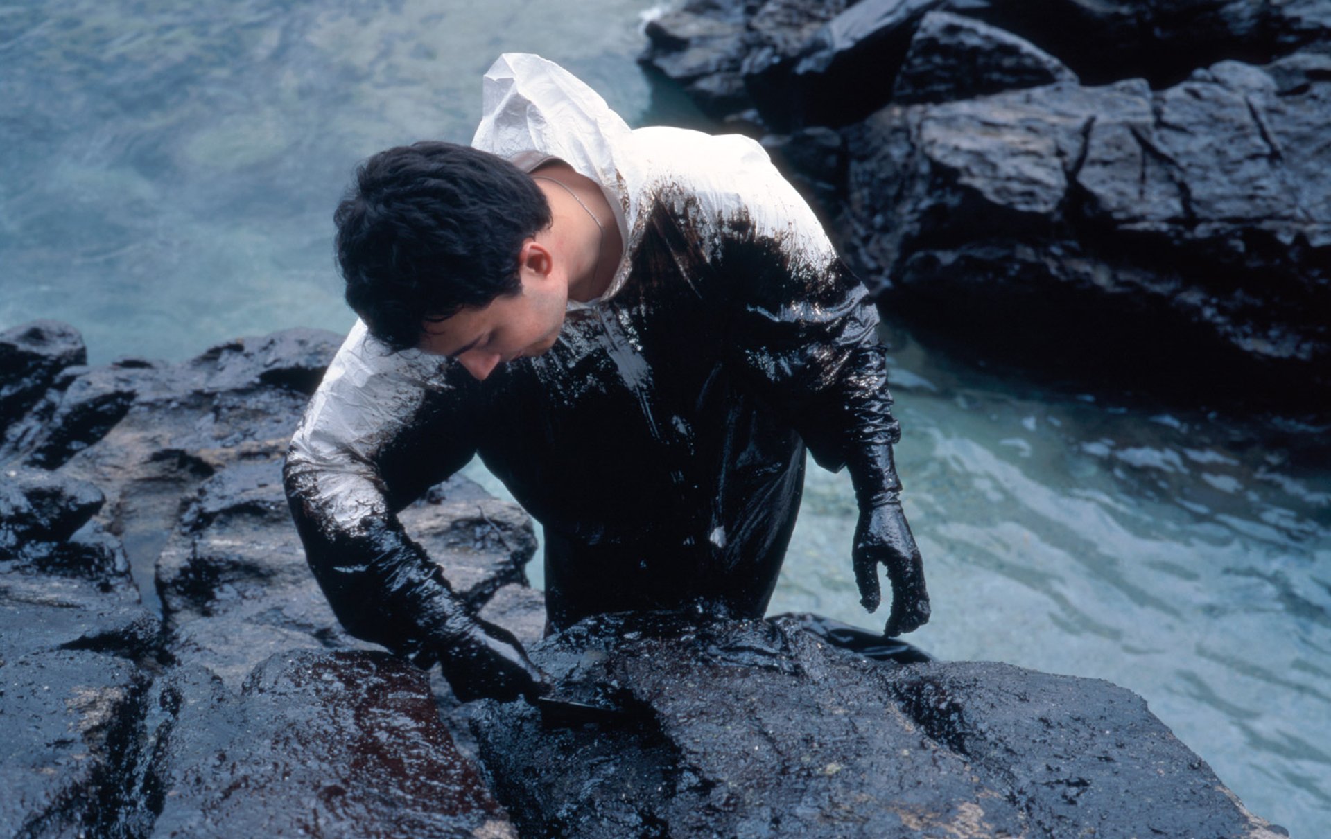 Allan Sekula's Volunteer On the Edge (Islas Cíes, 12/20/02), from the series “Black Tide/Marea negra,” (2002–03) © Allan Sekula. Image courtesy of the artist and Marian Goodman Gallery, London