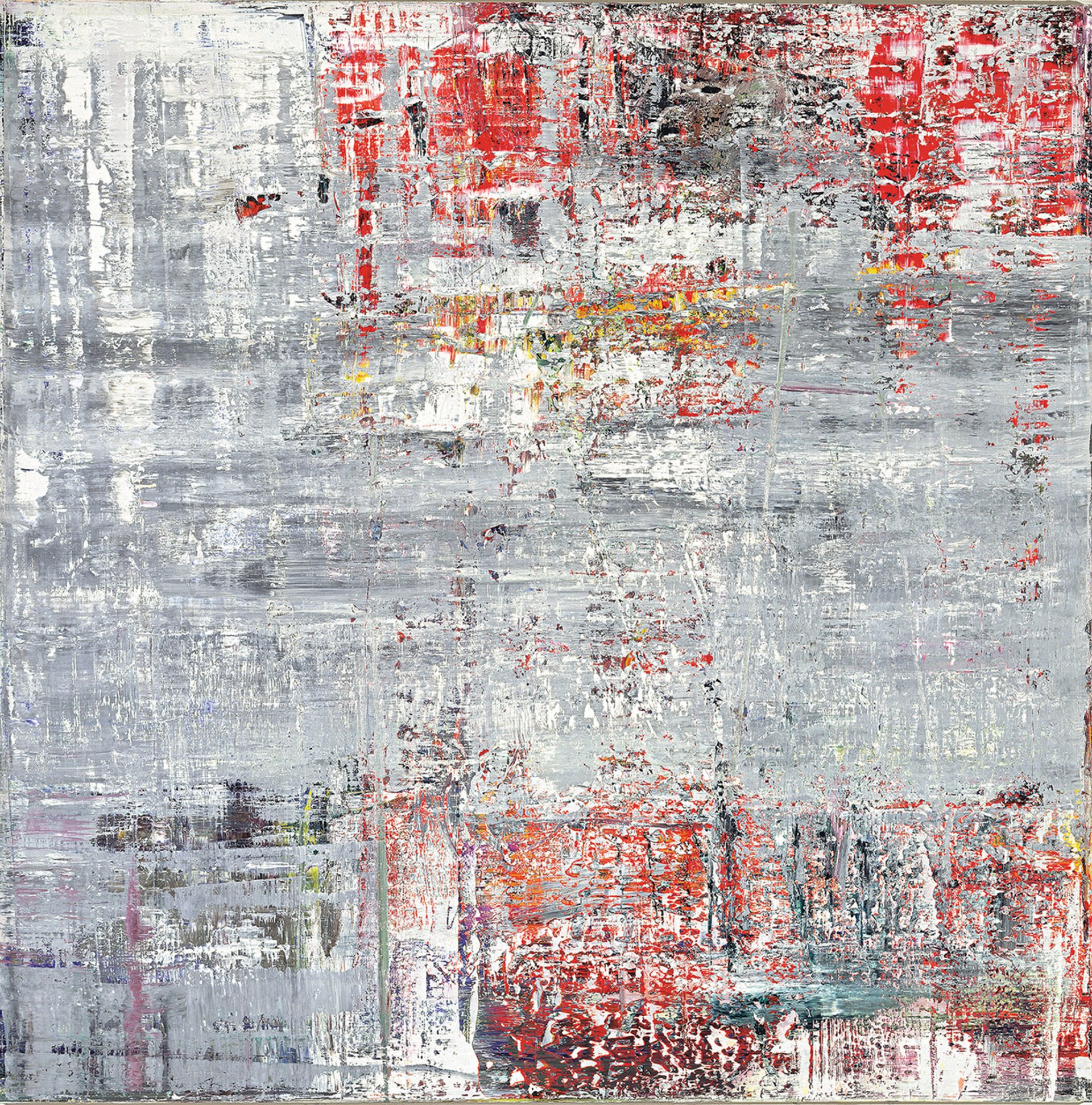 The exhibition centres on the artist’s ground-breaking series lsuch as Cage (2006) and Birkenau (2014) while showcasing some of the painter’s earliest lithographs and other works not shown before in a museum exhibition. They include Group of People, a 1965 black-and-white painting from Richter’s early photo-based practice, which features a man reading a newspaper amid a crowd of demonstrators. Such works, says the curator, are a testament to not only the artist’s examination of art history but his engagement in the fraught political history surrounding it.