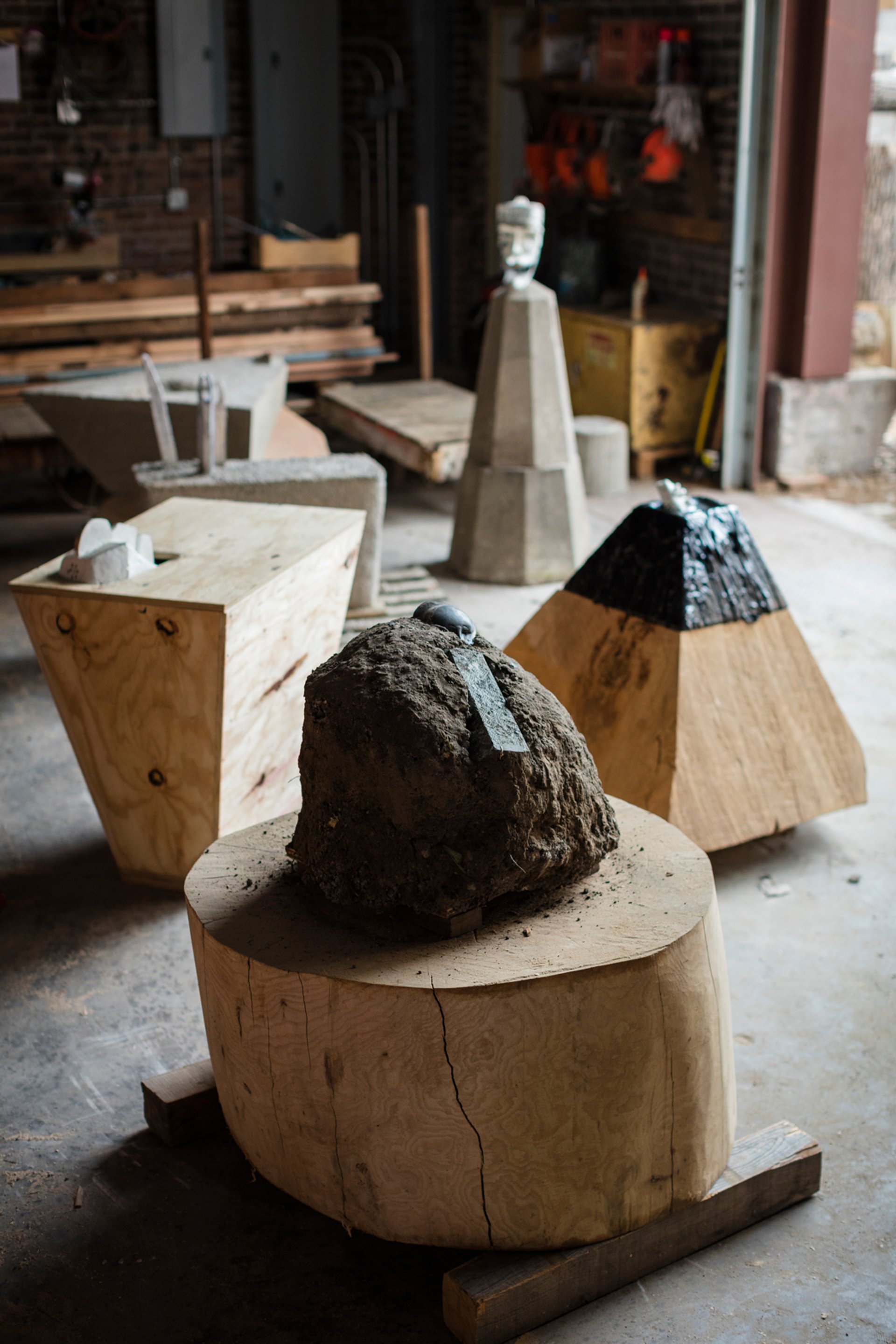 Many of the forms are based in concrete, which is acting as a binder for varying kinds of African, European or American histories: the history of fur-trading in America, of indigenous Americans and the complicated, devastating truths of what happened as a result of European invasion. One way of thinking about an Amalgam is, what would happen if 19th-century printing design were to conflate with pop sculpture and what types of new forms might emerge? Or what would happen if Impressionism met Minimalism?
