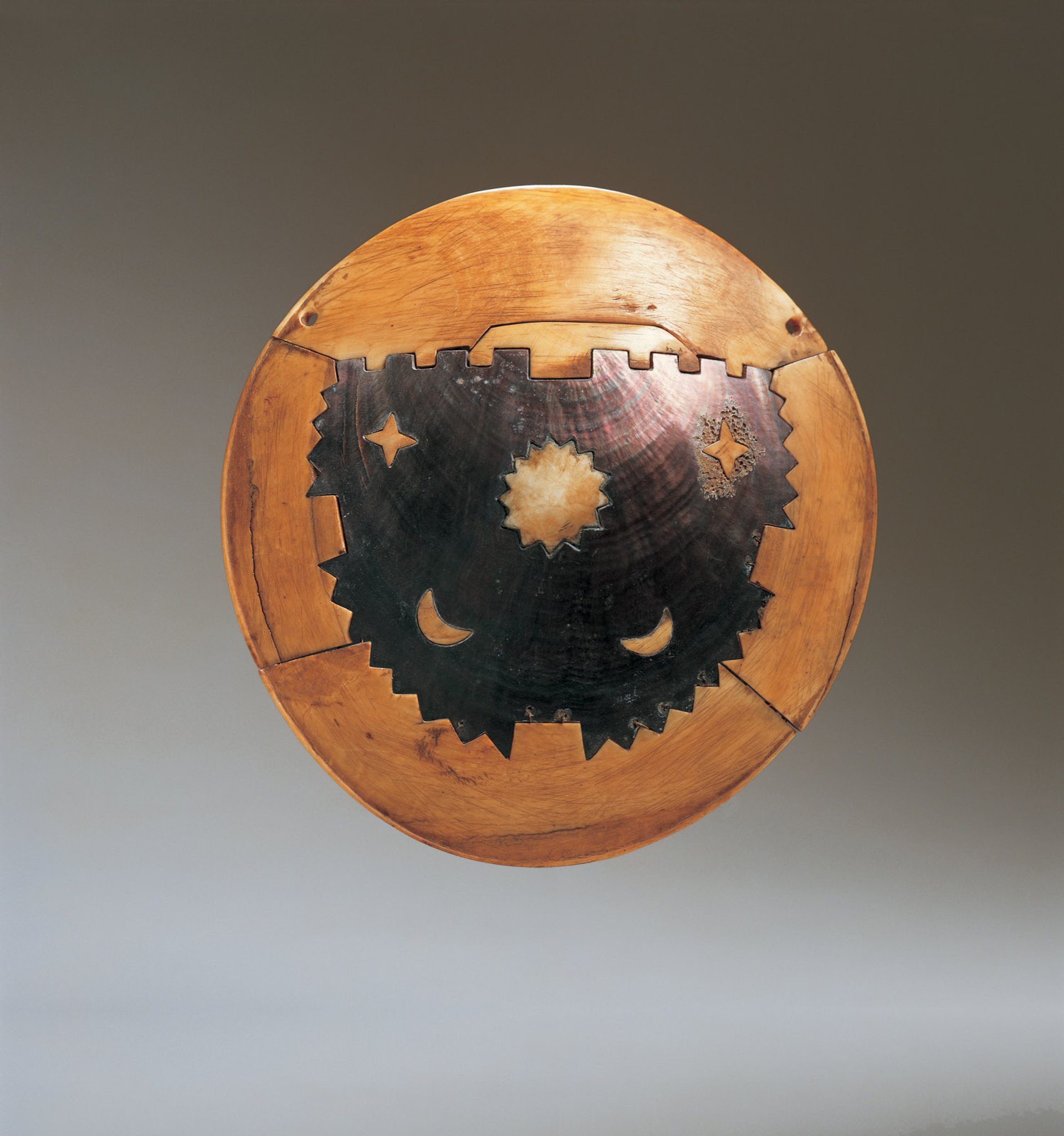 An early 19th-century breast plate (civavonovono) in sperm whale ivory and black pearl shell Photo courtesy of Mark and Carolyn Blackburn Collection