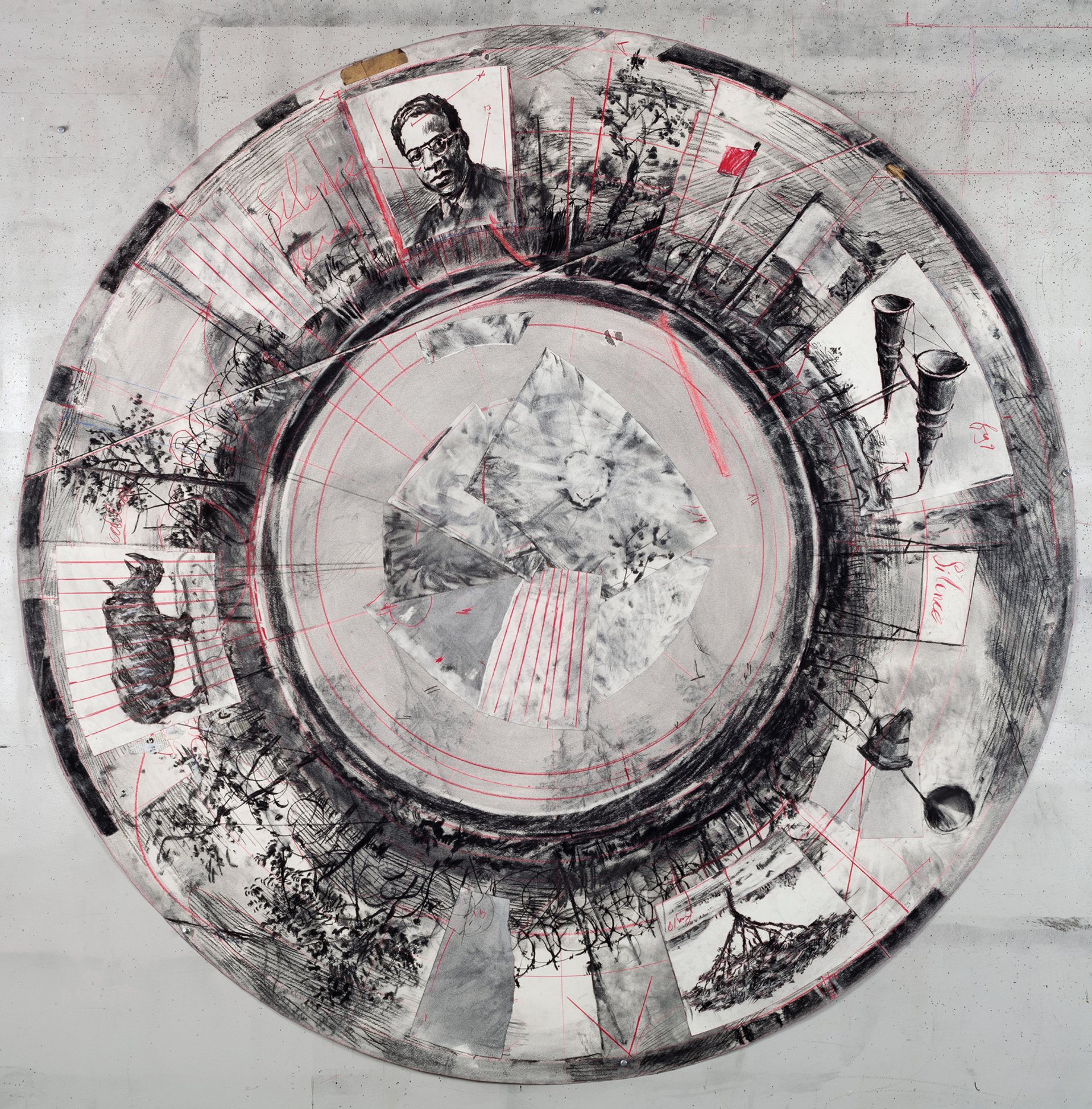 Kentridge’s Untitled (Drawing for the Head & the Load, Tondo) (2018) Courtesy of Goodman Gallery and the artist