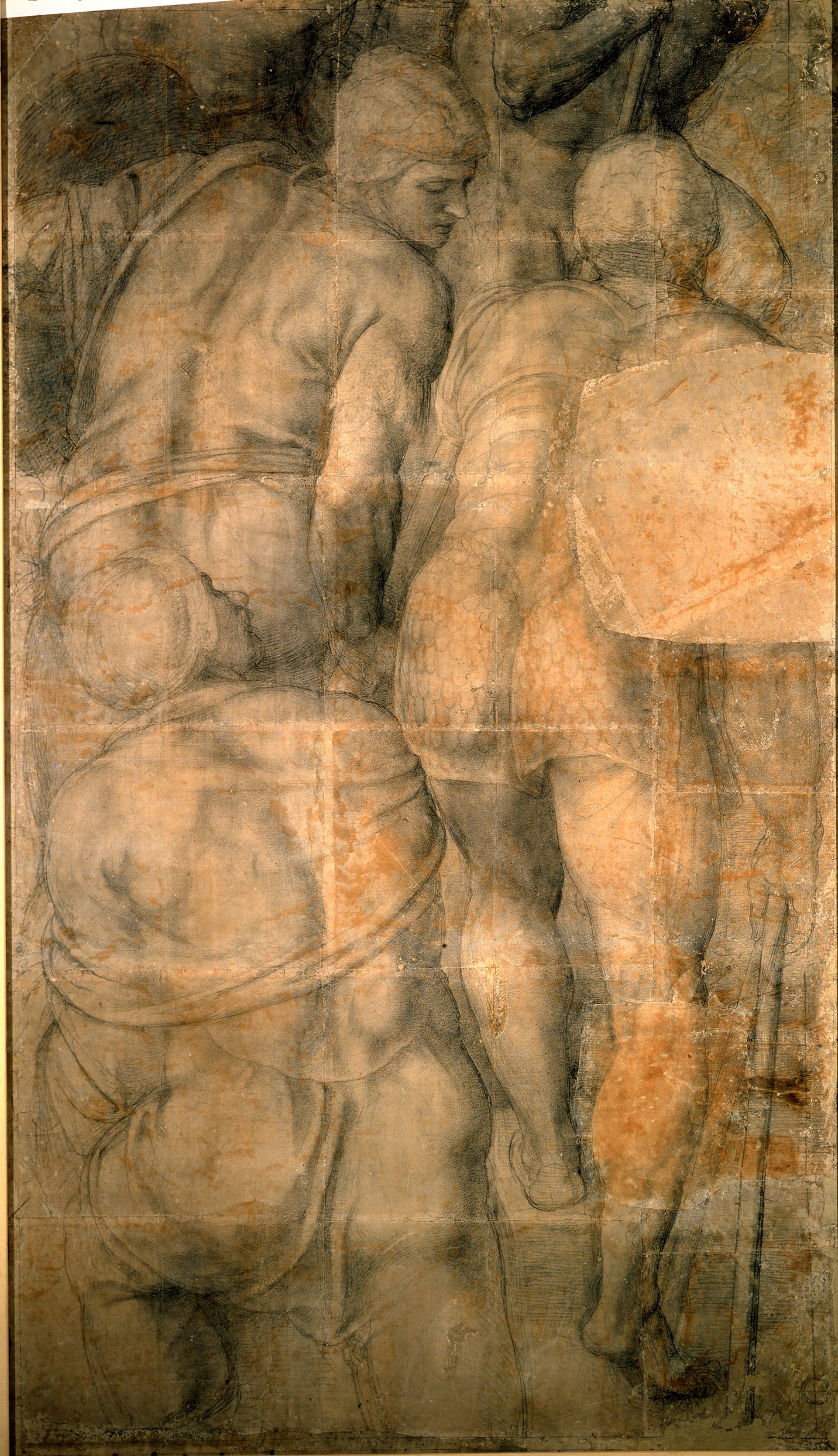 Michelangelo Buonarroti, Cartoon with a Group of Soldiers for the Crucifixion of Saint Peter Drawing (1542-46) Museo Nazionale di Capodimonte, Naples