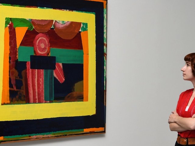 Antony Peattie, the music writer who was Hodgkin’s partner in the final four decades of his life, says that Hodgkin “had got into the habit of spending winter in India, mostly in Mumbai/Bombay”. They took an apartment there, converting a second bedroom into a studio. “There was something about India and the circumstance that allowed Howard to work,” Peattie says. “Partly it was that the difficulty of being there meant that there wasn’t much else that you could do.” Hodgkin used a wheelchair towards the end of his life, a tricky proposition amid the traffic, bustling streets and banyan trees in Mumbai, “so we scarcely ever went out except by taxi. So Howard was in the apartment looking at the view, and that included the Indian Ocean on one side and Gothic Bombay on the other, and if you woke very early there was dawn. And somehow there was the sunset, too. So the apartment and the life there suited work. And that became his absolute priority; he just wanted to work.”
