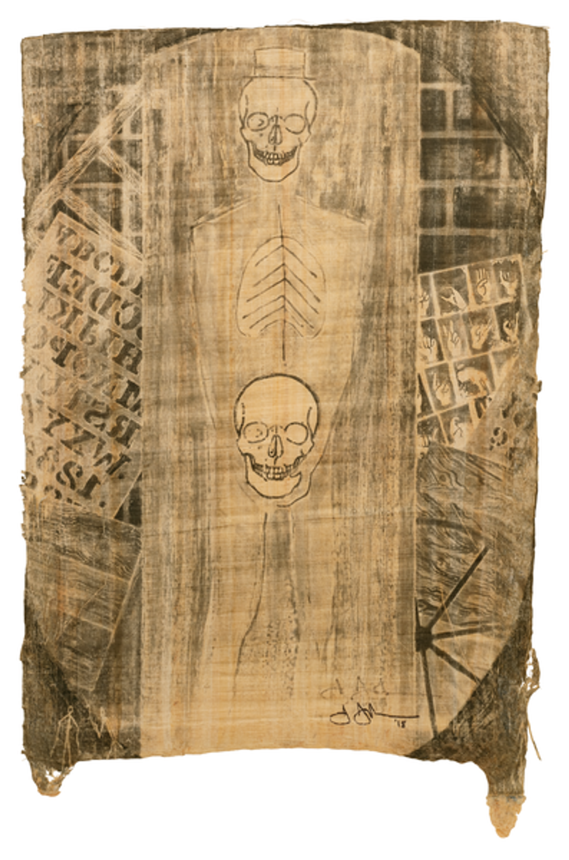 Jasper Johns, Untitled (2018), etching on Egyptian papyrus © Jasper Johns/VAGA at Artists Rights Society (ARS), NY. Courtesy of Matthew Marks Gallery, New York