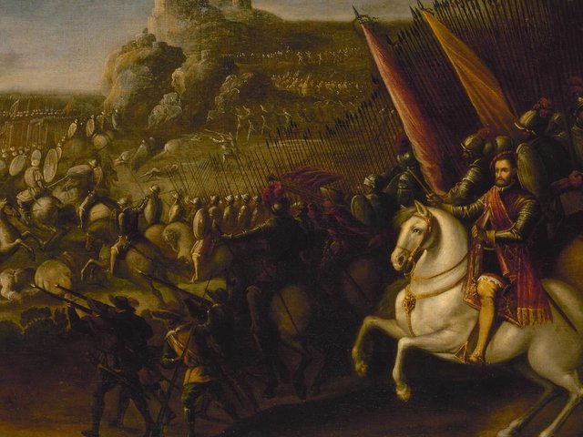 But The Standard-Bearer is an anomaly in this show of the Dutch and Spanish schools of the 17th century in that he is alone. Every other Dutch picture, whether history painting, portrait or still life, is accompanied by a Spanish pendant. And yet, The Standard-Bearer is an apt introduction: emblematic of the great 17th-century painting that we encounter repeatedly—almost overwhelmingly—throughout, but also setting the historical context. Because the two nations were in conflict for most of the period being celebrated: the 80 Years War, in which the Protestant Dutch Republic battled for independence from the Catholic Kingdom of Spain, continued until 1648—for three-quarters of Velázquez’s life (1599-1660) and two-thirds of Rembrandt’s (1606-1669). Standard-bearers were seen as courageous heroes, leading the troops into battle and thus at the greatest risk of death. They had to be bachelors, so that they would not leave widows and bereaved children. The figure’s precarious existence is there in Rembrandt’s painting: for all his finery, his pomp, his pride, look into his eyes and you see vulnerability and weariness. And in this, too, it is a symbolic picture: a vivid realism—much of it clearly indebted to Caravaggio, the show’s absent presence—is the unifying quality of the art of these warring nations.