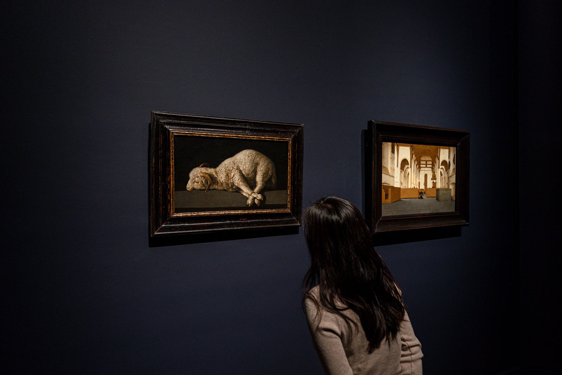Zurbarán’s Agnus Dei (1635-40) was paired with Pieter Jansz Saenredam’s Interior of the Sint Odulphuskerk in Amsterdam (1649? © Olivier Middendorp