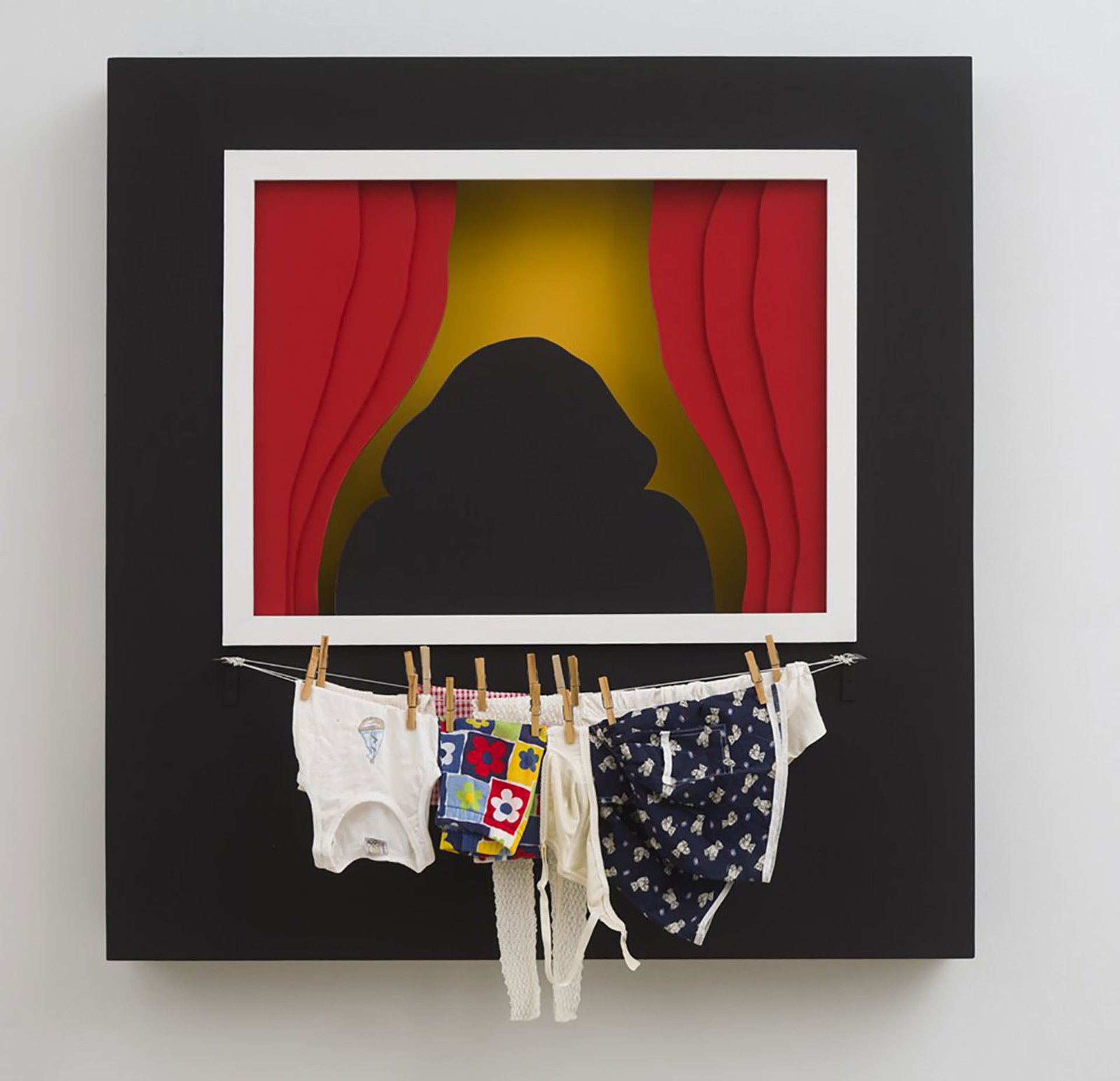 In the 1960s and 1970s, she was especially interested in the everyday trials of motherhood and domesticity, which she crystallised in works like A Espera (1967/2000). The diorama-like assemblage depicts the silhouette of a figure, presumably Maiolino, looking out a window as clothes dry on a line. Other works deal with the difficulty of communication and the obscurity of language, such as a print titled Anna where two figures are depicted speaking the artist's name, but with no apparent goal or resolution.