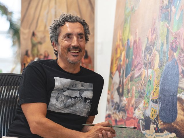 Kent Monkman in the Met's Great Hall Photo by Eileen Travell
