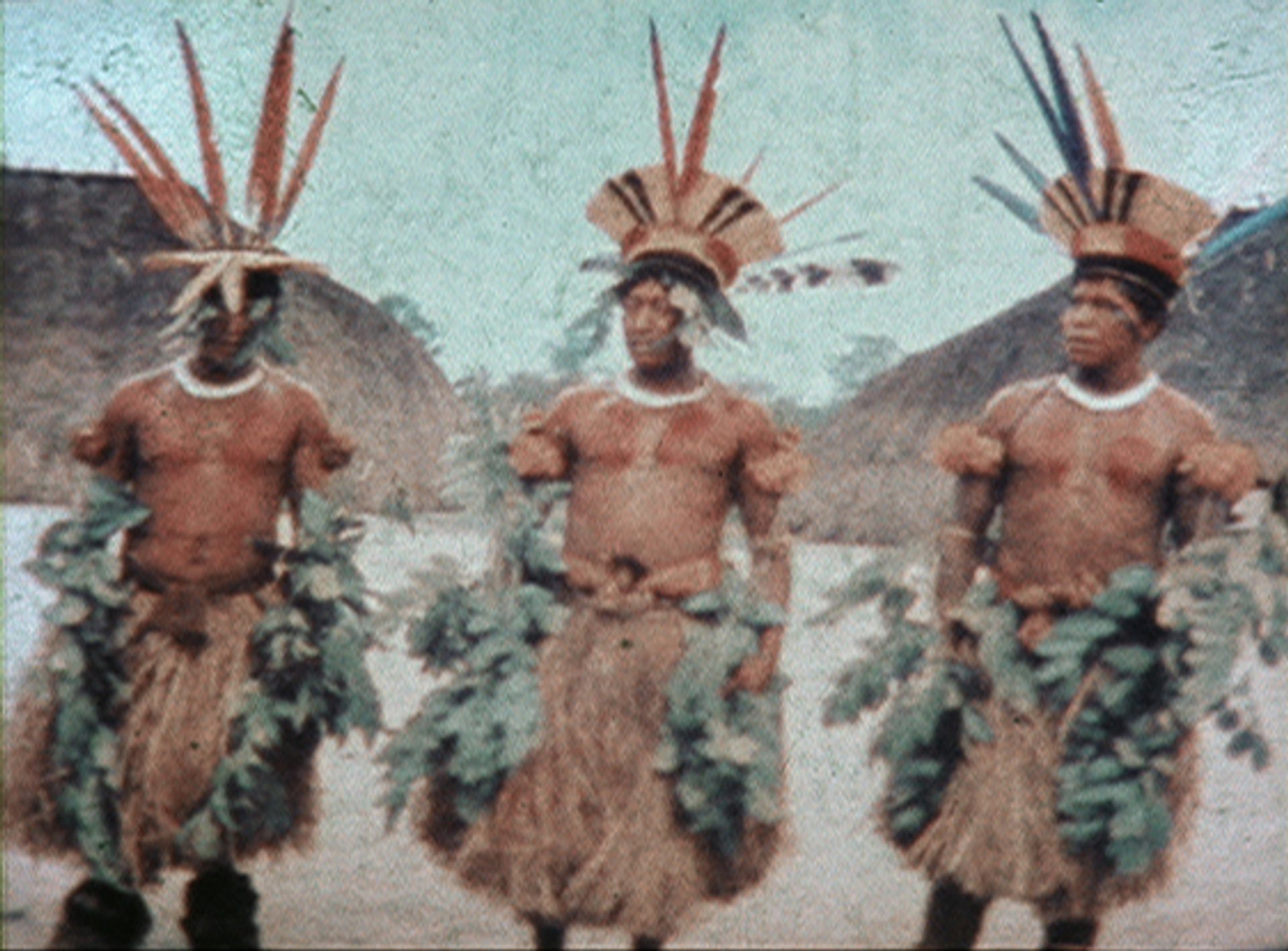 Yet Pape sometimes risks a queasy romanticisation of poverty. A slideshow projected on the wall pays tribute to the “anti-architecture” of the favelas, which, for Pape, seemed to actualise the Neo-concretistist emphasis on synthetic, anti-hierarchial principles. These squalid and provisional dwellings, she wrote, offered the freedom “of self-expression in the collective space—turned outwards, open to the world like fruit that has been broken through its rind; outside and inside as equals: a Moebius strip.” The film Our Parents "Fossilis" (1974), composed of images of postcards of Brazilian Indians and set to a native song, is mournful of Brazil’s destroyed ancestral heritage mediated through touristic kitsch.
