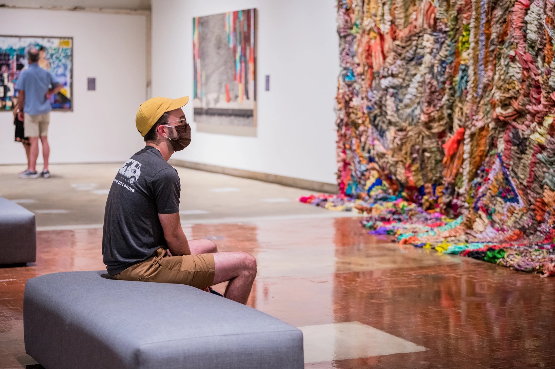 A visitor takes in the exhibition State of the Art 2020 at the Momentary Images courtesy of Crystal Bridges Museum of American Art and the Momentary