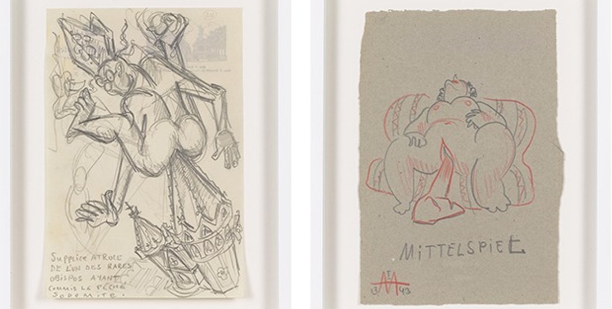 One image that is not included in the show, but that is sure to be remembered when seen, is Cirque Etrange, drawn in Alma Ata (Kazakhstan) in 1942, in which a penis decorated with stars walks a tightrope strung between two nude boys with erections. A bourgeois family watches the scene from the circus floor. The elements are so wildly irreverent and so Modern that they could have been a model for Seth Rogin’s sexually charged satire film of last summer, Sausage Party.