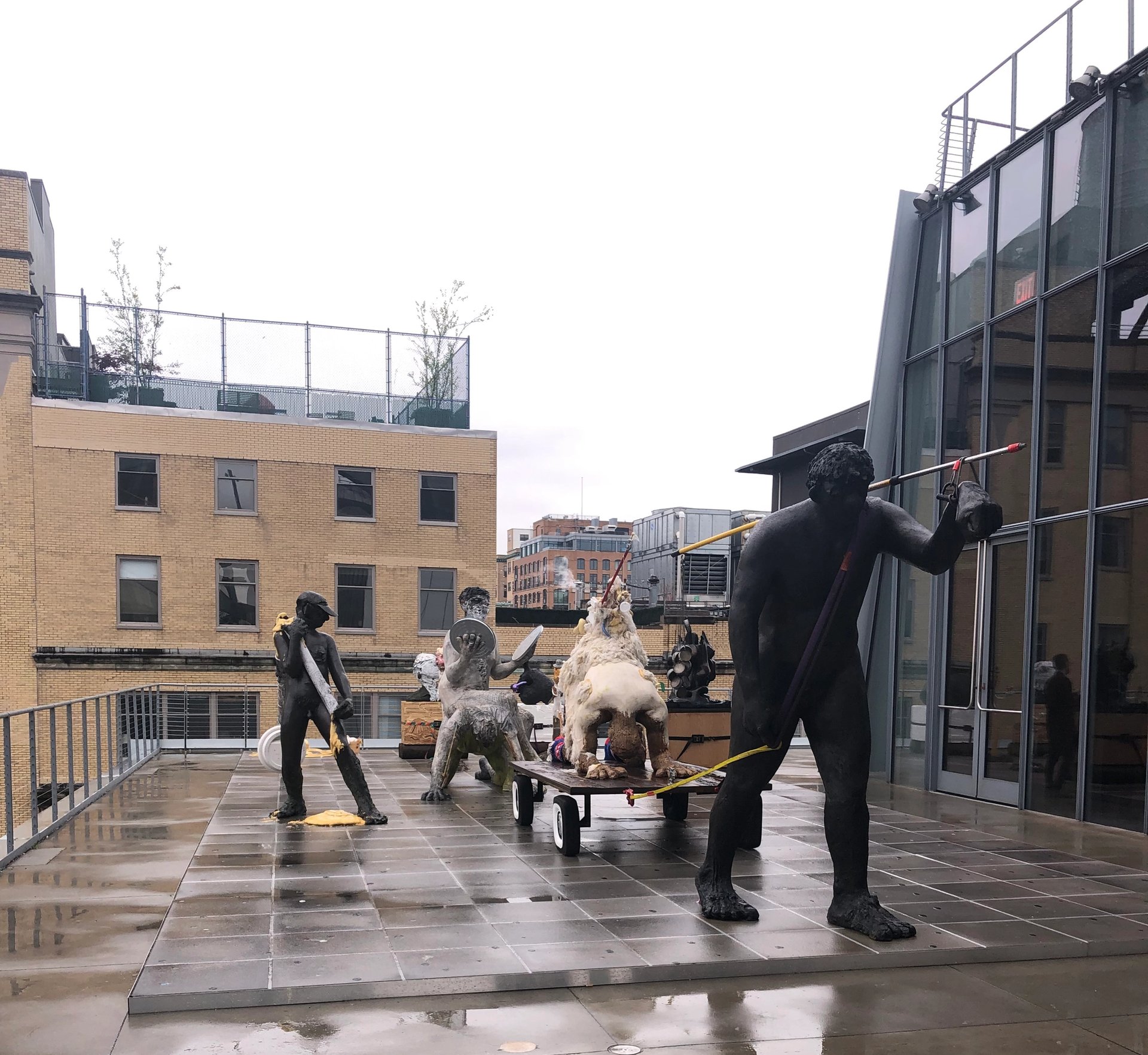 There is more painting than has been usual, some rather good—Walter Price, Jeanette Mundt, Keegan Monaghan—none exceptional. Wild cards are few. Martine Syms is one, and so is Nicole Eisenman. Known best for her painting, Eisenman’s outdoor Procession presents a troubling tableau of agonised, larger-than-life figures reminiscent of concrete sculptures by Adrián Villar Rojas, but make use of myriad organic and industrial materials that include resin, feathers, dirt, hair and twigs.